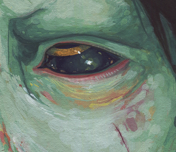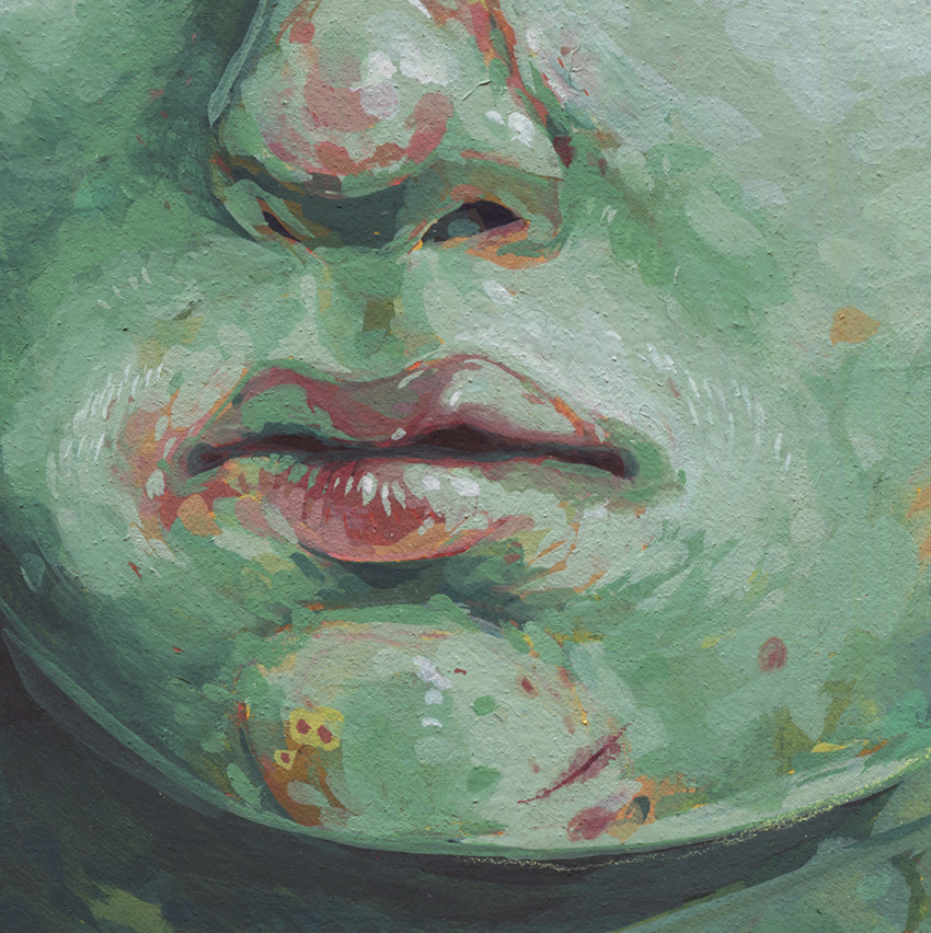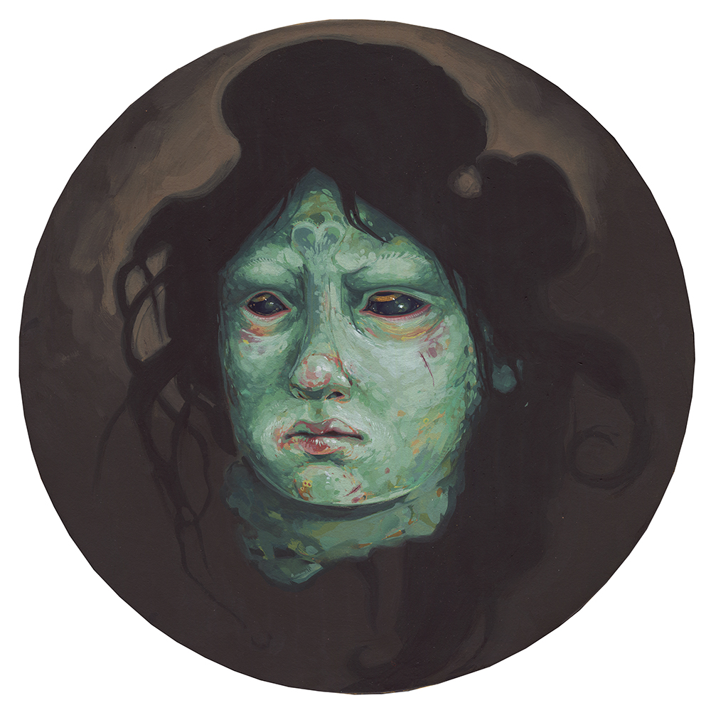 30cm tondo gouache with mixed media on panel-mounted paper, 2025. Exhibited at “Pond Song” at Arch Enemy Arts, Philadelphia, PA, June 2025.
